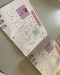 تعلم الأحرف اليابانية بمجموعتيها الهيراغانا والكاتاكانا وهي حروف صوتية ، يمثل كل منها مقطعًا صوتيًا واحدًا وهي أول أبجدية يتعلمها الأطفال اليابانيون في المدارس، ما يجعل من تعلمها أيسر وأكثر فعالية للمبتدئين.، وكذلك تعلم مجموعة واسعة من الكلمات، والتمكن من القراءة.