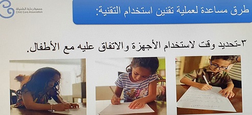 وأكدت على الوالدين ضرورة معرفة البرامج التي يشاهدها الأبناء وصلاحيتها لأعمارهم . وأضافت أنه لمساعدة عملية تقنين استخدام التقنية ،هناك عدة طرق منها توفير بدائل ملء الوقت عوضا عن الأجهزة ، وإتاحة الفرصة للأطفال للعب مع أطفال آخرين ، مع توفير ألعاب للأطفال . كذلك لا بد من تحديد وقت معين لاستخدام الأجهزة ، والاتفاق عليها مع الأطفال والتأكد من المحتوى الذي سيراه الطفل . تجدر الإشارة أن جميع الحاضرين استفادوا من هذه الدورة وسيعملون على تطبيق ما جاء فيها على أبنائهم .