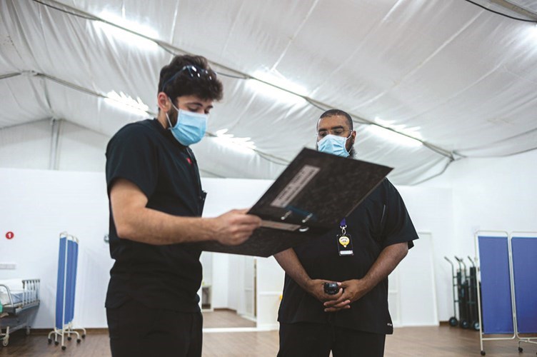 ٭ الأطباء يتابعون المرضى دوريا من خلال العلامات الحيوية واعراض فيروس كورونا المستجد او اي امراض أخرى مصاحبة او مزمنة حتى نهاية فترة اقامتهم، علما أن العلاج والمتابعة يكون على حسب البروتوكولات الطبية المتبعة لوزارة الصحة.