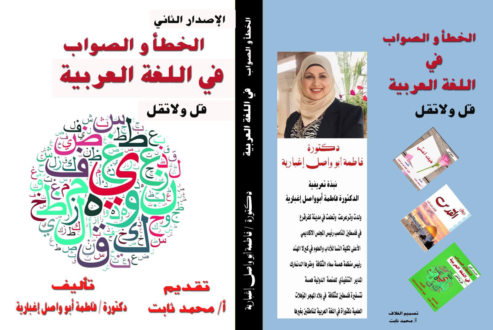 صدر الكتاب الثاني للدكتورة فاطمة أبو واصل وجاء بعنوان “الخطأ والصواب في اللغة العربية”