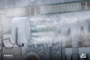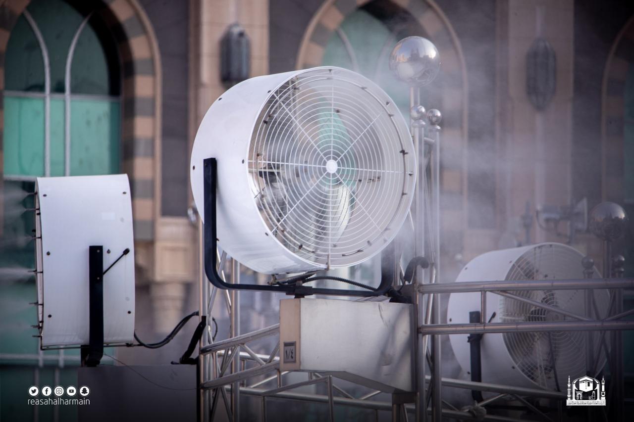 وفرت الرئاسة العامة لشؤون المسجد الحرام والمسجد النبوي، ممثلة في وكالة الشؤون الفنية والتشغيلية والصيانة 242 مروحة رذاذ، و 216 عمود ضباب مائي لتلطيف أجواء ساحات المسجد الحرام باستخدام تكنولوجيا (تبريد الهواء بالرذاذ) من خلال امتصاص الطاقة الحرارية من الهواء الخارجي وخفض درجة حرارته لدرجة تقارب (6) درجات مئوية.