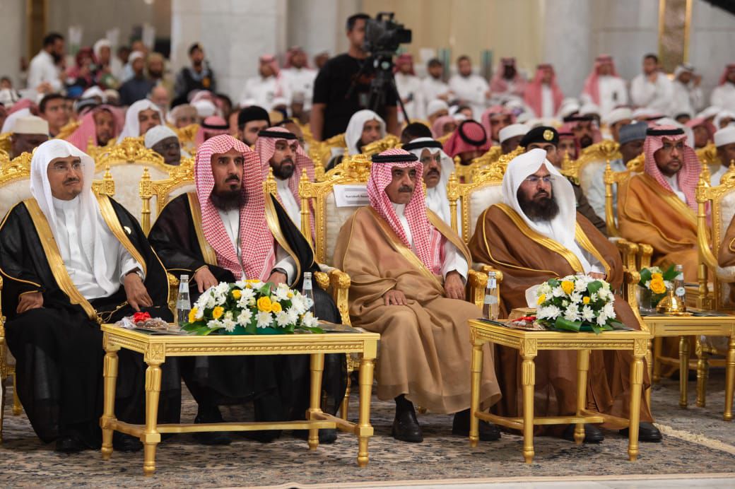 وحضر الحفل معالي رئيس الشؤون الدينية بالمسجد الحرام والمسجد النبوي، الشيخ الأستاذ الدكتور عبدالرحمن بن عبدالعزيز السديس، يصحبه معالي الشيخ صالح بن عبدالله بن حميد إمام وخطيب المسجد الحرام، وعدد من أئمة وخطباء المسجد الحرام