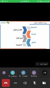 نُفذ البرنامج عن بعد من خلال منصة ( Teams ) , من تقديم المدربة أ / العنود بنت محمد الحياء ، والذي يهدف الى تعزيز السلوك والصفات التي تميز الأشخاص في بيئة العمل والتي يعبر عنها بـ ( المهنية ) .