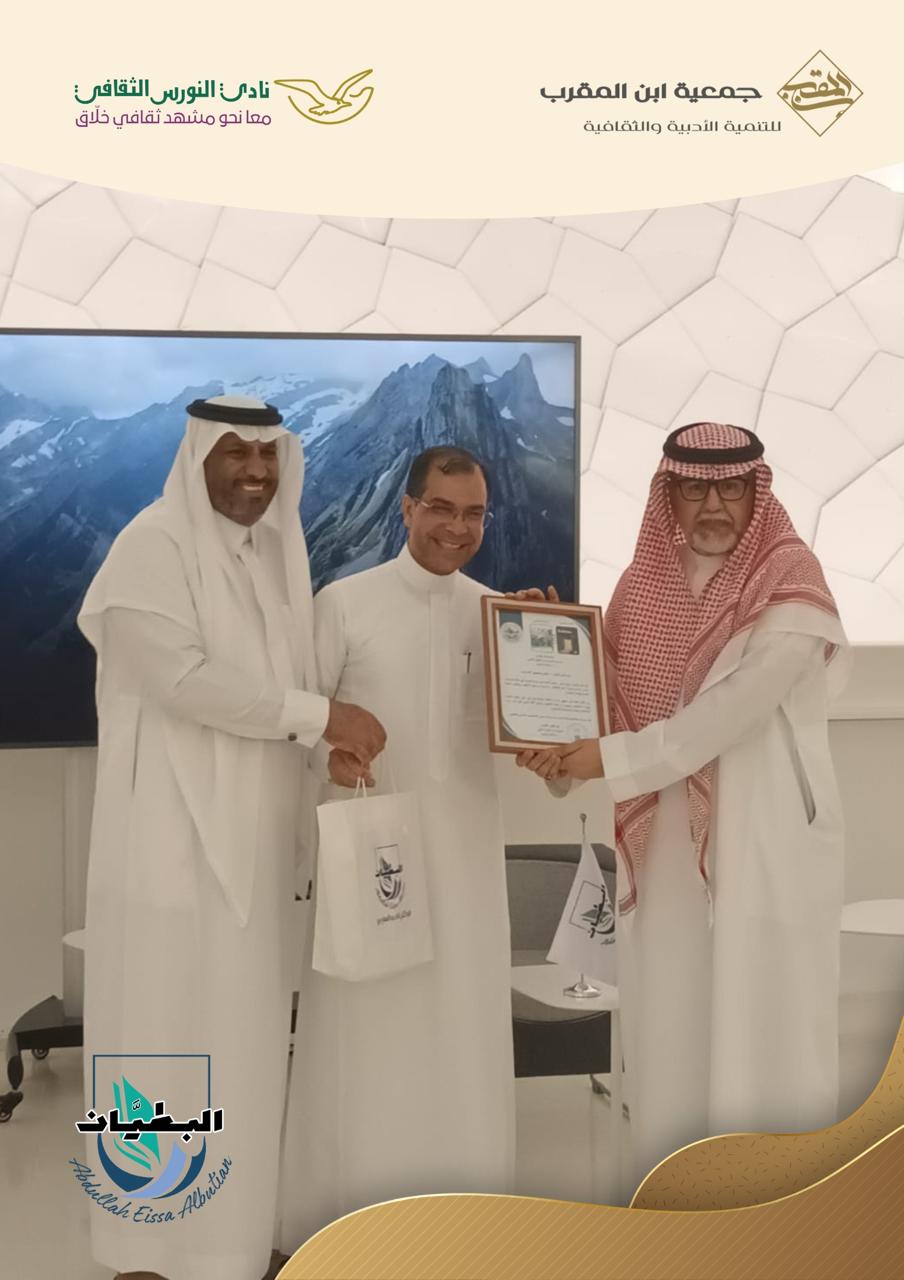 حيث صرح الرئيس التنفيذي أ. أحمد اللويم بإعلان نادي النورس الثقافي شريكًا لجمعية ابن المقرب للتنمية الأدبية والثقافية؛ من خلال افتتاح فعالية تكريم الأدباء في مركز الملك عبدالعزيز الثقافي (إثراء)، وذلك يوم الاثنين 16 يونيو 2025 م، ملفتًا لأهمية هذه المبادرة النوعية والتي لم يحدث لها مثيل على صعيد دعم المواهب الشابة وتعزيز من منجزاتها.