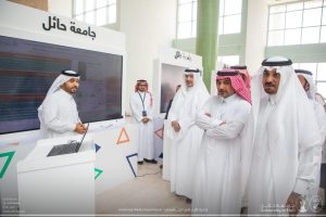 حيث ألقى رئيس جامعة حائل كلمة خلال المنتدى، أوضح فيها أن الجامعة استهدفت مواكبة رؤية المملكة ٢٠٣٠ للوصول إلى مجتمع حيوي، واقتصاد مزدهر، ووطن طمـوح، مـن خـلال إقامة العديد من المبادرات والبرامج التقنية، كما أقرت الجامعة مؤخراً عدداً من البرامج المتخصصة في درجة البكالوريوس؛ لتأهيل طلابها في برامج الذكاء الاصطناعي وعلم البيانات، كما أنها احتفت مؤخراً بتخريج قرابة خمسين خريجًا في برامج الدراسات العليا لتخصصات الذكاء الاصطناعي، وتأهيلهم نوعيًّا ليحققوا نسـبة التحاق بسـوق العمل تبلغ 96%، كما عملت الجامعة على اعتماد تحسين أدائها في مؤشرات التحوّل الرقمي، لتضمن لنفسها موقعًـا ضمن أفضل ست جهات في قطاع التعليم والتدريب، ولتصل إلى مرحلة التكامل في تقديم الخدمات، كما حصدت الجامعة أحد أفضل خمسة مشروعات منافسة في جائزة الحكومة الرقمية بمشروعات التقنيات الناشئة، كما حقق مشروع منصة جامعة حائل للتعليم الإلكتروني المبتكر شهادة تميز في القمة العالمية لمجتمع المعلومات، التي ينظّمها الاتحاد الدولي للاتصالات.