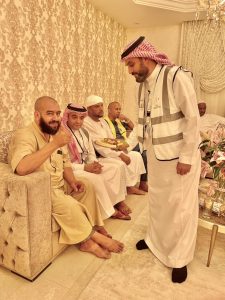 أ. بلقاسم العامري وقائدة القسم النسائي أ. عزيزة الشهري برنامج سفراء مكة فقام بإستقبال وفد من ضيوف الرحمن في كفي غُنة وتم الإحتفاء بهم وتقديم الضيافة لهم والتحدث عن مكة المكرمة وعن المشاعر المقدسة والحج