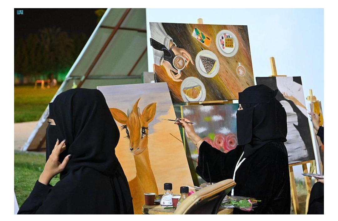 ونثرت الفنانات التشكيليات إبداعاتهن في أروقة وجنبات موقع الفعالية، وقد تنوعت أعمالهن الفنية بين رسم البورتريه الواقعي، والتجريدي، والسريالي.