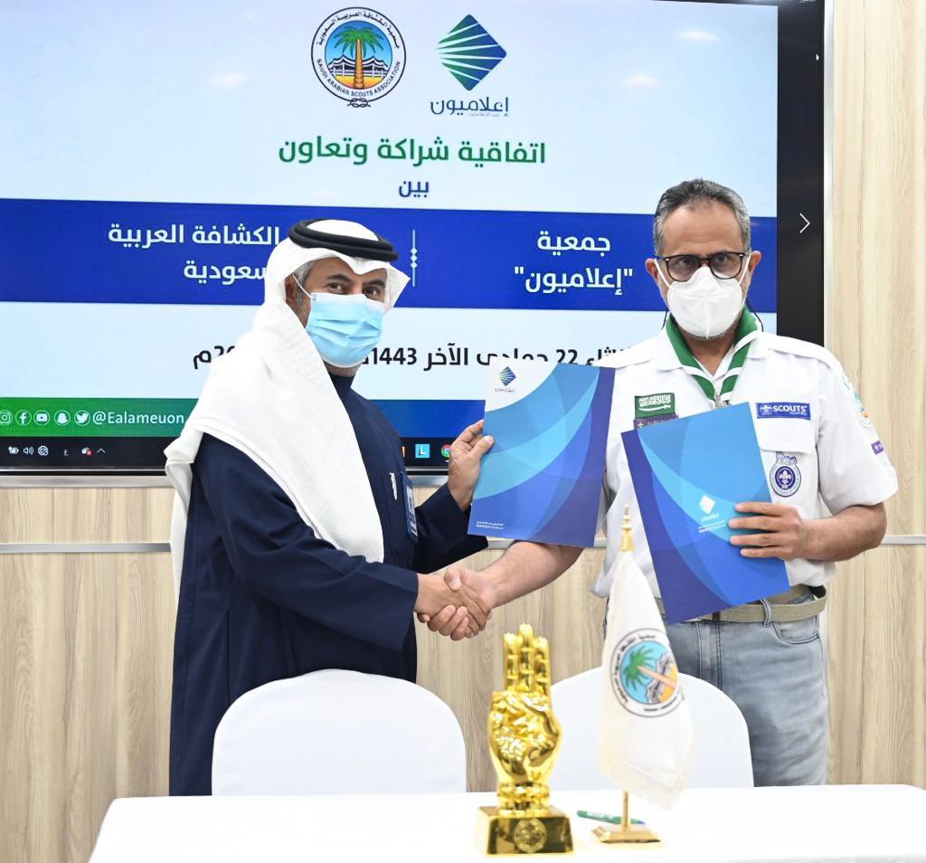 أبرمت جمعية “إعلاميون”، وجمعية الكشافة العربية السعودية، يوم الثلاثاء 25 يناير 2022 بالرياض مُذكرة تفاهم تهتم بتنسيق الجهود وتكاملها لتحقيق الأهداف المشتركة، باعتبار جمعية “إعلاميون” متخصصة في المجالات الإعلامية ولديها كفاءات متميزة وخبرات مؤهلة في ذلك، ولكون جمعية الكشافة العربية السعودية جمعية نفع عام مهتمة في التطوع.