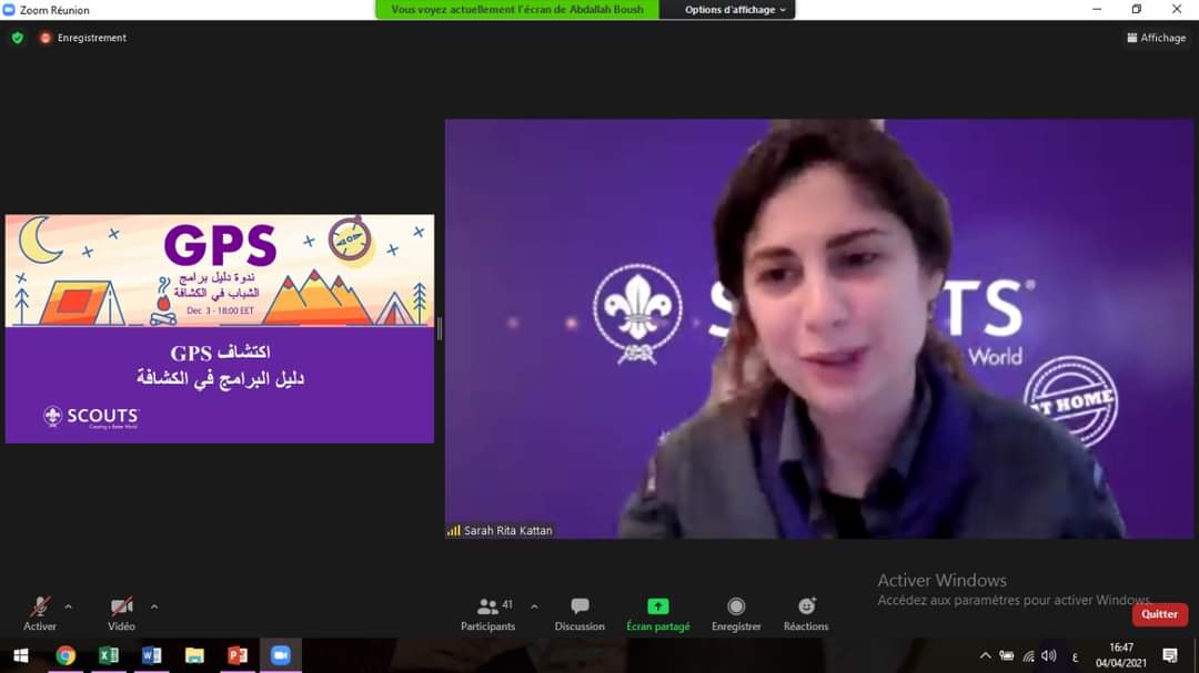 بدأت بعد ذلك أولى الجلسات بمناقشة حول GPS والتطبيقات الوطنية للسياسة العالمية لبرنامج الشباب ، والتي أدارتها عضو اللجنة الكشفية العالمية سارة ريتا قطان ، فيما أدارت رئيسة اللجنة الكشفية العربية الفرعية للبرامج إيمان شريكان الجلسة الثانية عن المناهج الكشفية العربية المطورة وسبل تطبيقها في الجمعيات الكشفية العربية .