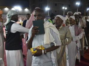 يتم تقديم الهدايا التذكارية والضيافة الحجازية وعمل الزفة المكية ورشهم بماء الزهر والورد ، أيضاً ترديد الأناشيد الدينية والترحيبية وكذلك تقديم مأدبة عشاء ترحيباً بهم وبقدومهم .