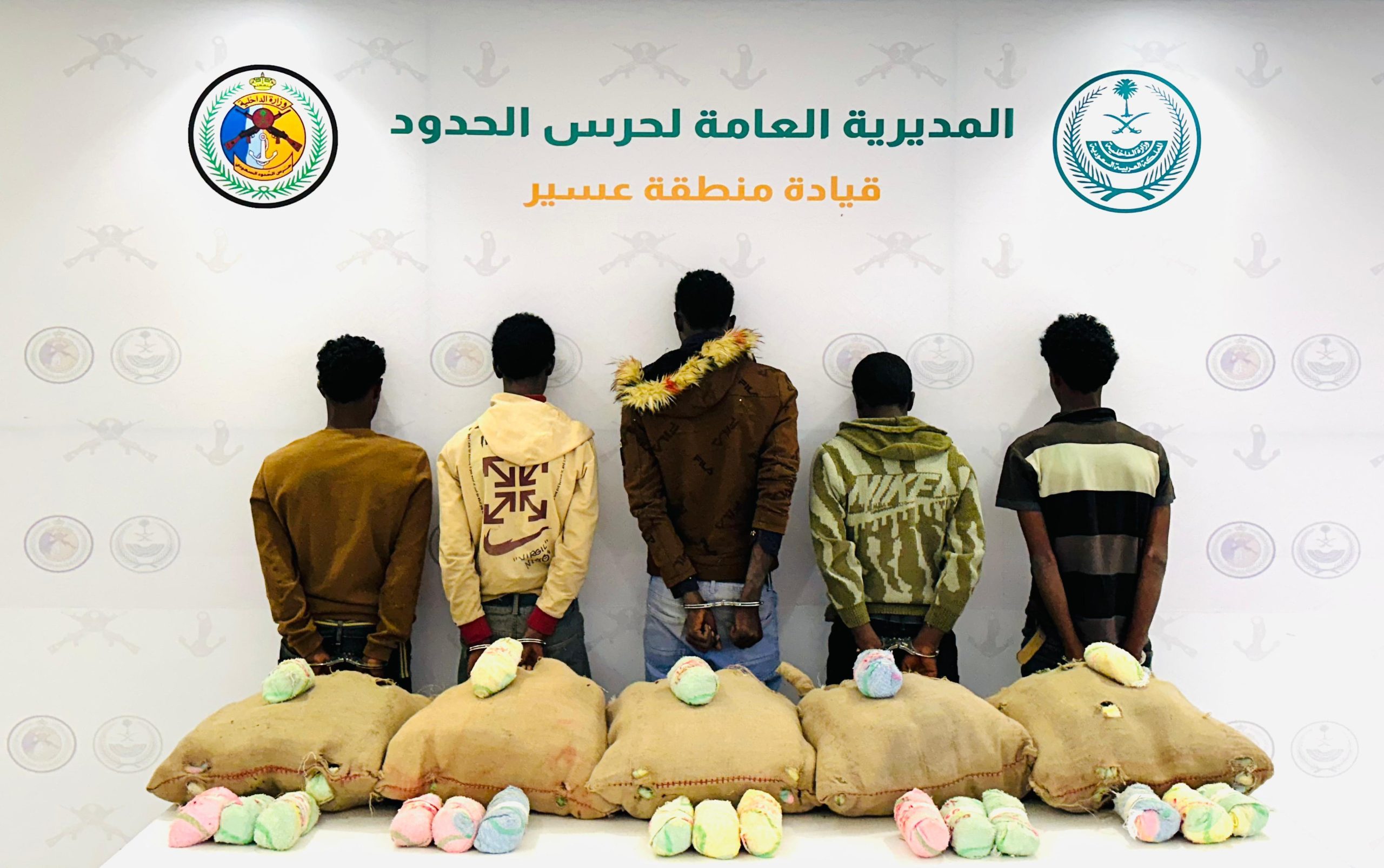 حرس الحدود بمنطقة عسير يقبض على 5 مخالفين لنظام أمن الحدود لتهريبهم 100 كلجم من نبات القات المخدر
