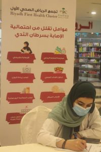 إيماناً من دورنا كفرق بروين التطوعي [ المسار الصحي ] المشاركة في الفعاليات والمناسبات الوطنية والايام العالمية في تقديم خدمة وطنية حيث نشارك في الشهر العالمي للتوعية حول سرطان الثدي مع التجمع الصحي الأول في توعية زوار العثيم مول وارشادهم للطريقه الصحيحة للوقاية من الاصابة بسرطان الثدي والكشف المبكر عنه ، كما لا يسعني إلا أن أشكر وسائل الاعلام على تواجدهم الدائم في الفعاليات والبرامج المجتمعية عامة وبرامج فريق بروين بشكل خاص .