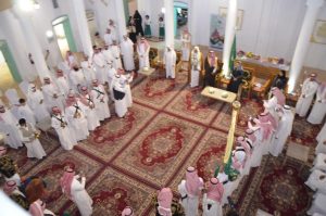 وبدء الحفل بالسلام الملكي السعودي ثم القى سعادة المحافظ الأستاذ منصور بن سعد السديري كلمة رحب فيها بالحضور من كافة ابناء المحافظة والدوائر الحكومية والجمعيات الخيرية واعيان المحافظة.