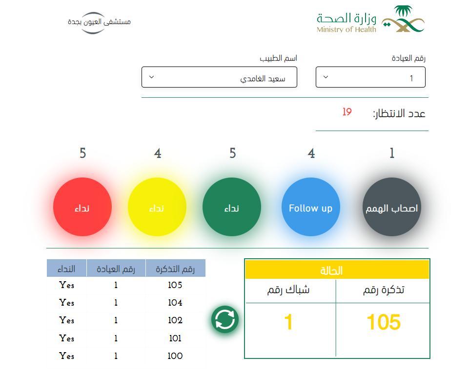 يذكر أن هذه الخدمة تتيح للطبيب المعالج الإلمام الجيد بالإحصائيات للمرضى و ترتيب الأولويات للدخول للعيادة بطريقة منظمة و سهلة .