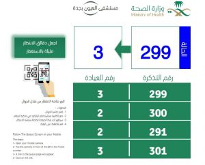 دشن مستشفى العيون بجدة مؤخراً الخدمة الرقمية والأولى من نوعها باسم ( الإنتظار الذكي ) ، حيث تتيح هذه الخدمة الراحة للمريض و سهولة الوصول إليه في ظل تطبيق الإجراءات الاحترازية و التباعد ، و تكون هذه الآلية بواسطة إعطاء المريض عند وصوله باركود خاص به و من خلاله يتم ربط استدعاءه للعيادة عن طريق صوت تنبيه يصدر من الجوال الخاص بالمريض ، و يدعم هذا الباركود أيضاً بث مباشر يوضح رقم المريض و العيادة التي يتوجه إليها ، كما أن هذه الخدمة تدعم تصنيفات الحلات للمرضى على شاشة العرض المباشر على الجوال أو من خلال الشاشات في القسم ، حيث يشير اللون الأحمر للحالات الطارئة و اللون الرمادي إلى أصحاب الهمم و الأزرق إلى المراجعة مع الطبيب و غيرها من الألوان .