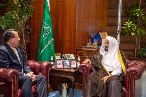 وأكد معالي الوزير آل الشيخ أن المملكة ممثلة بحكومة خادم الحرمين الشريفين وسمو ولي عهده الأمين حفظهم الله تحرص على المسلمين حول العالم ونشر رسالة الإسلام السمحة الوسطية، ونشر المحبة والرحمة ونبذ الغلو والتطرف والإرهاب، متمنياً له طيب الإقامة بالمملكة والتوفيق في مهام عمله في ضوء العلاقات المتميزة بين البلدين الصديقين.
