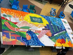 وسوف يدشن معالي أمين محافظة جدة الأستاذ صالح بن على التركي بمشيئة الله هذه اللوحة المعبرة عن حب الوطن بالإضافة إلى افتتاح معرض وطن المجد والعطاء الذي تنظمه الفنانة التشكيلية ليلى مداح ويشارك فيه 35 من كبار الفنانين في صالة تسامي بالصيرفي ميقا مول الساعة السابعة مساءً من يوم غداً الأربعاء 22 / 9 / 2021م الموافق 15 / 2 / 1443هـ ضمن احتفالات الجمعية باليوم الوطني لبلادنا العزيزة.