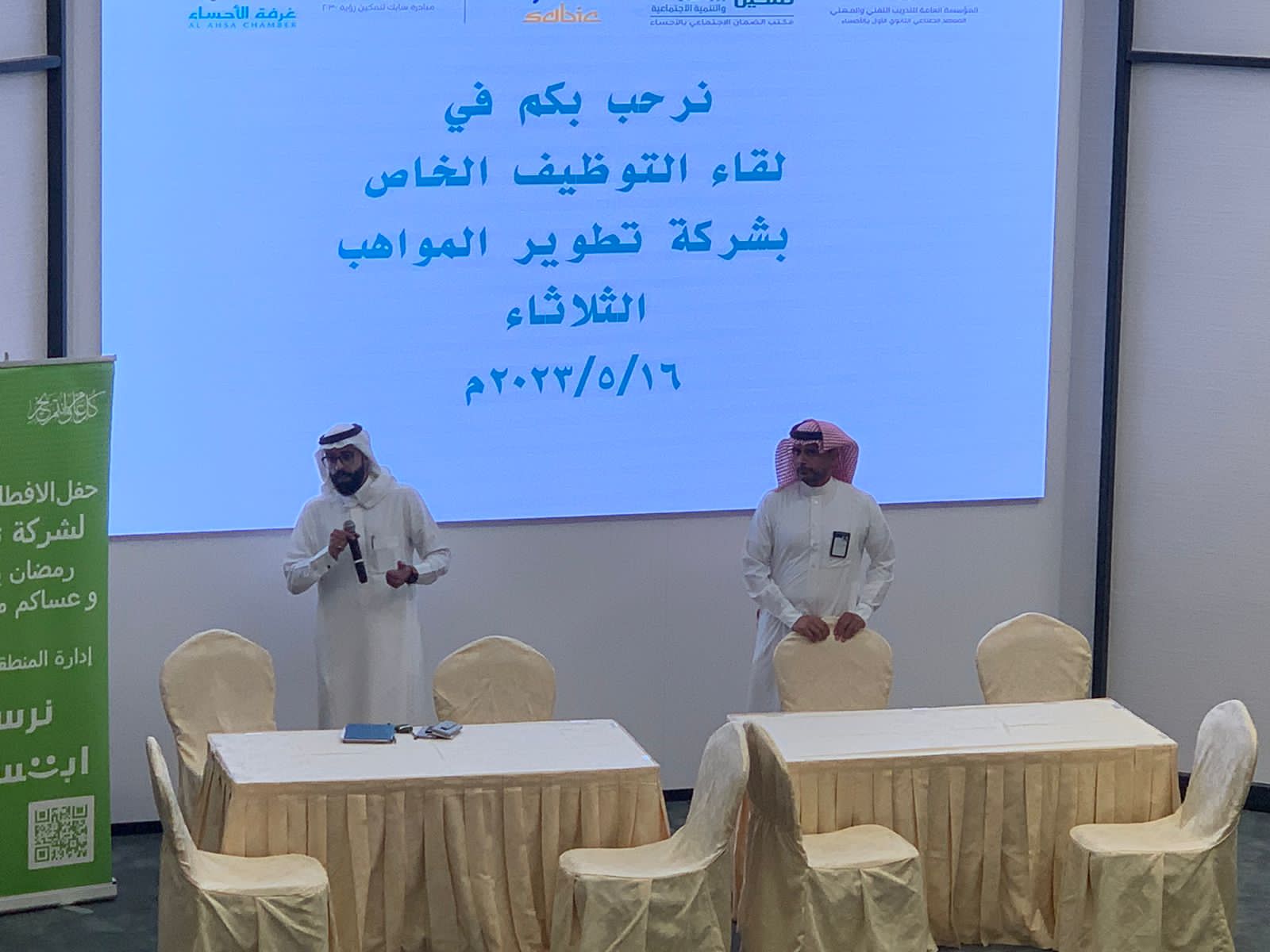 تم تنفيذ اللقاء في قاعة غرفة الأحساء بمشاركة شركة تطوير المواهب للتقديم على مالديها من شواغر وظيفية مختلفة كما تم إجراء المقابلات عليها للمستفيدين الباحثين عن عمل والذي بلغ عددهم اكثرمن”100″مستفيد ومستفيدة حسب ماتتوفر لديهم من مؤهلات علمية وخبرات عملية