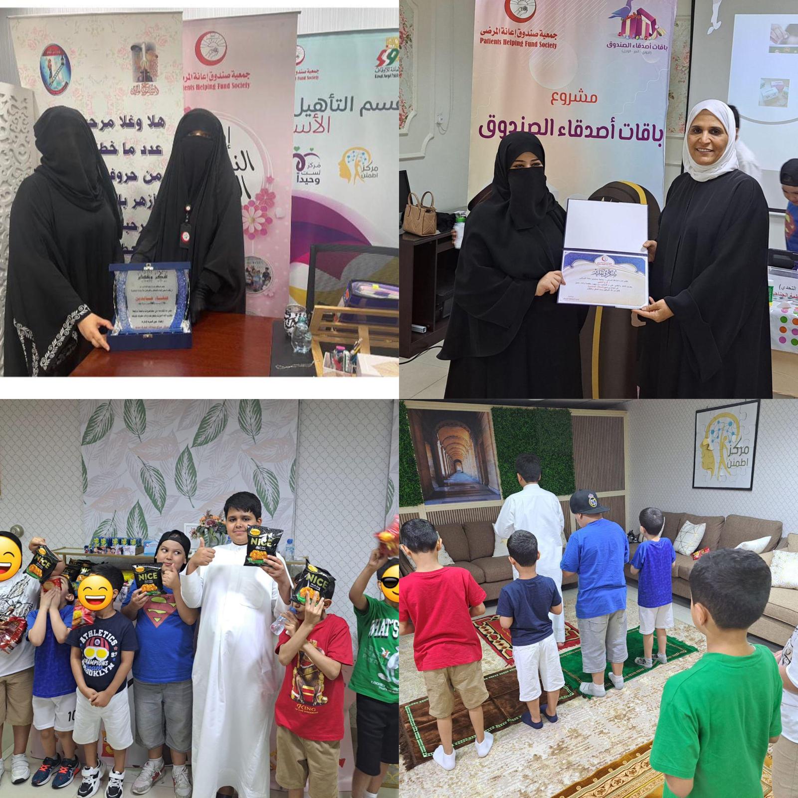 نظمت إدارة النشاط النسائي – قسم العمل الاجتماعي بجمعية صندوق إعانة المرضى برنامج أصدقاء الصندوق فئة الدرر للأولاد من عمر ٧ إلى ٩ سنوات بالتعاون مع وزارة الاوقاف متمثلة بإدارة التنمية الأسرية بحضور فاطمة الجناحي وفرح العتيبي مشرفات ادارة التنمية وتخلل البرنامج ورشات عمل متعددة ومسابقات وتم توزيع الجوائز على أصدقاء
