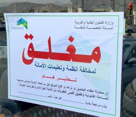 أمانة العاصمة المقدسة تغلق وتغرم أكثر من 20 منشأة تجارية غير ملتزمة بالبروتوكولات الاحترازية