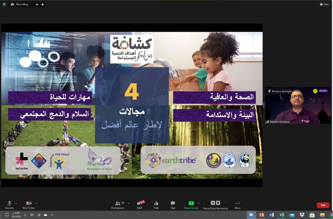 نظمت جمعية الكشافة العربية السعودية , اليوم وضمن برامجها التثقيفية أمسية كشفية افتراضية عن البرنامج الكشفي العالمي ” إطار عالم أفضل ” قدمها مدير إدارة البرامج في الإقليم الكشفي العربي نسيم ضناوي ، والذي تناول فيها التعريف بإطار عالم أفضل ، وقدم عرضاً عن المحاور الجديدة للإطار ، تضمنت مجالات الصحة والعافية ، والبيئة والاستدامة ، ومهارات الحياة ، والسلام والدمج المجتمعي ، وعناصر الرحلة لتصبح عضواً في قبيلة الأرض ، ومنهم الذين يمكن أن يشاركوا في تلك القبيلة ، وتضمن البرنامج مبادرة رسل السلام حيث أشار الى ان الهدف منها المساهمة في بناء ثقافة السلام بالتعاون مع افراد المجتمع وشبكة دولية من الكشافة، بالإضافة الى مجالات العمل والتي تتضمن السلام الشخصي ، والمجتمع القائم ، والنتيجة الجماعية ، وتناول مسارات التعلم والتي شملت خيارات افضل وذلك بتطوير عادات مستدامة نحو اسلوب حياة صديق للبيئة ، والطبيعة والتنوع البيلوجي للتواصل مع الطبيعة وحمايتها نحو الاستدامة ، والطاقة النظيفة من خلال استكشاف واعتماد خيارات الطاقة المستدامة ، وكوكب صحي بمنع واستعادة المياه والنظم البيئية للأراضي من التلوث.