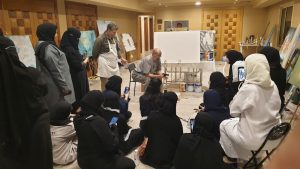 وقد اسعدني تفاعل الحضور واهتمامهم وهذا الاهتمام انعكس على النتيجه حيث كانت هناك اعمال غاية في الروعة فقد قدمت لهم تجربتي مع التأثيرية وهي الرسم الذي يعتمد على نقل الواقع أو الحدث من الطبيعة مباشرة وكما تراه العين المجردة بعيداً عن التخيّل .