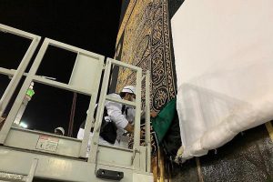 وسيتم استبدال الكسوة القديمة بكسوة جديدة، بإشراف معالي الرئيس العام لشؤون المسجد الحرام والمسجد النبوي الشيخ الدكتور عبدالرحمن بن عبدالعزيز السديس.
