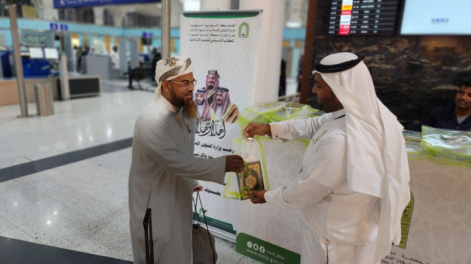 الشؤون الاسلامية تواصل توزيع هدية خادم الحرمين الشريفين في مطار المدينة الدولي ومطار ينبع الإقليمي