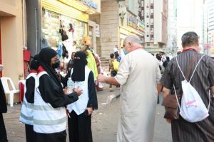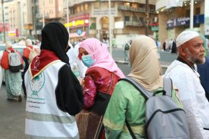 وقد قام الوفد بجولة على مواقع تدريب فتيات الكشافة بمقر مركز بادر الكشفي التطوعي ومشاركتهن بتقديم الخدمات التطوعية في المنطقة المركزية المحيطة بالحرم المكي ومنها توزيع إفطار حاج .