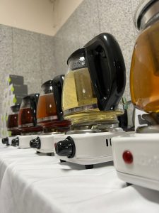 وتم إعداد الضيافة بتقديم عدة أنواع من الشاي منها الشاي الأحمر والشاي الأخضر والشاي الأبيض في أجواء من التفاعل