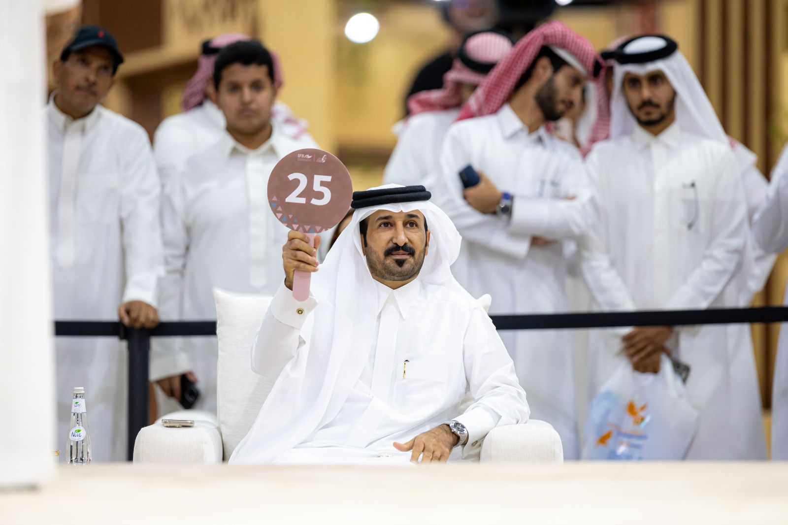 وبدأت ببيع الصقر الأول (جير شاهين فرخ) من مزرعة “جيف” الإنجليزية بمبلغ (28) ألف ريال، تلاه الصقر الثاني (جير شاهين فرخ) من مزرعة “فالكون ميوز” الإنجليزية بـ(48) ألف ريال، فيما اختتمت الليلة ببيع أغلى صقر في المزاد لهذا العام، وهو (جير بيور سوبر وايت) من مزرعة “آر إكس” الأمريكية بمبلغ (1.2) مليون ريال، اشتراه محمد فهاد بن جخدب.