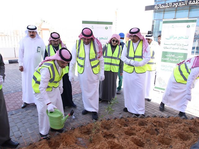 تشجير مقر فرع وزارة الصحة بالحدود الشمالية امتدادًا لبرنامج المدن الصحية