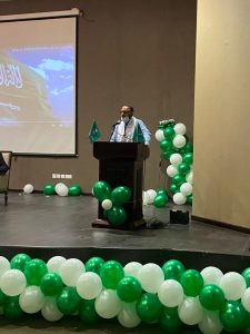 وألقى عميد الكلية التقنية بالطائف المهندس حمد محمد القاسم كلمة وجه فيها التهنئة لمقام خادم الحرمين الشريفين وولي عهده الأمين والشعب السعودي بهذه المناسبة الغالية على الجميع وشكر كل من شارك في تنظيم الفعاليات المقامة في الكلية والمناشط الأخرى خارج أسوار الكلية ضمن المسؤولية المجتمعية .