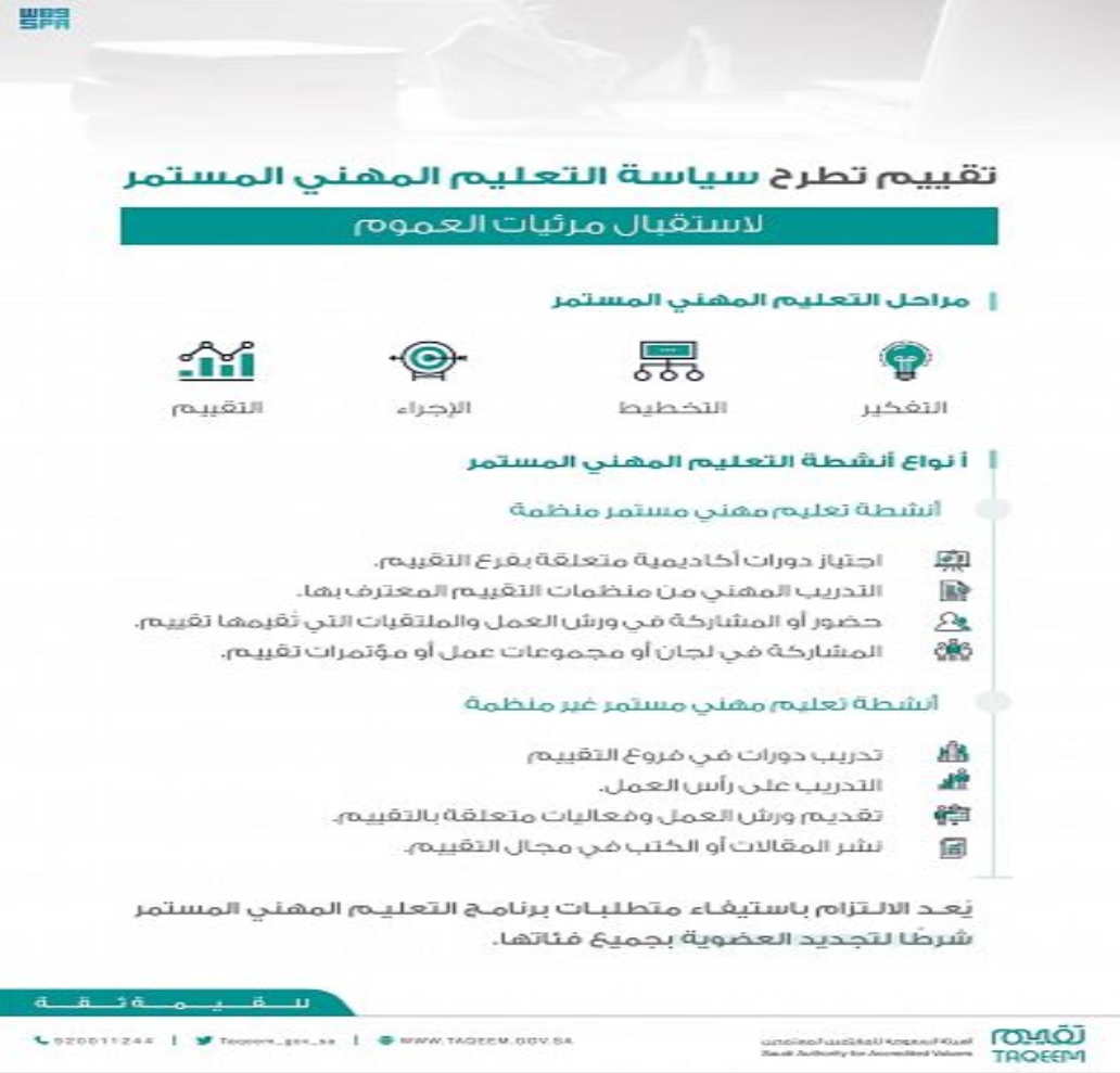 “تقييم” تطرح سياسة التعليم المهني المستمر لاستقبال مرئيات العموم