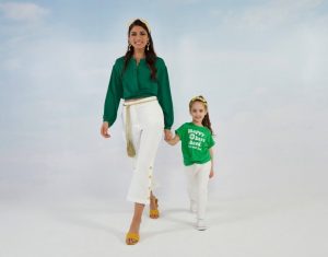 ويمكن للسيدات التألق في اليوم الوطني بفستان طويل من الساتان وبأكمام طويلة باللون الأخضر اللامع وتصميم انسيابي. كما يتوفر هذا التصميم بشكل قمصان من الساتان المزينة بكشاكش. وتضمن التشكيلة أيضاً فساتين بتصميم قميص باللون الأخضر الداكن وكنزات بأكمام منفوخة وياقات بربطة عنق باللون الأخضر الفاتح للاحتفال بهذه المناسبة. ويمكن للبنات المشاركات في الاحتفالات التألق بقمصان تي شيرت بيضاء مزينة بطبعات هندسية معاصرة أو فساتين بيضاء بتطريزات الأزهار باللون الأخضر.