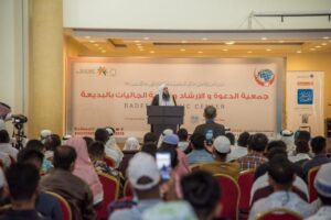 احتفلت جمعية الدعوة والإرشاد وتوعية الجاليات في البديعة – غرب العاصمة السعودية الرياض مساء أمس- بذكرى التأسيس المجيد للمملكة، وبلوغ عدد المسلمين في الجمعية منذو تأسيسها أكثر من 40 ألف مسلم جديد خلال مسيرة 30 عاما من الدعوة إلى الله، وذلك في حفل أقيم في القاعة الكبرى في مقر الجمعية، بحضور نائب رئيس مجلس الإدارة الشيخ الدكتور سعد بن عبد الله العريفي، وعضوي المجلس الدكتور محمد بن سعيد، والدكتور سلطان العريفي، والمدير التنفيذي للجمعية الشيخ فؤاد بن عبد الرحمن الرشيد، وعدد كبير من الجاليات المسلمة في المملكة، ودعاة ومسئولي الجمعية.