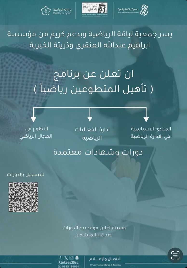 أعلنت جمعية لياقة الرياضية بمنطقة الحدود الشمالية عن إطلاق برنامجها “تأهيل المتطوعين رياضيا”، وذلك بدعم من مؤسسة إبراهيم عبدالله العنقري وذريته الخيرية، في إطار سعي الجمعية إلى تمكين الشباب وتعزيز مشاركتهم في القطاع الرياضي.