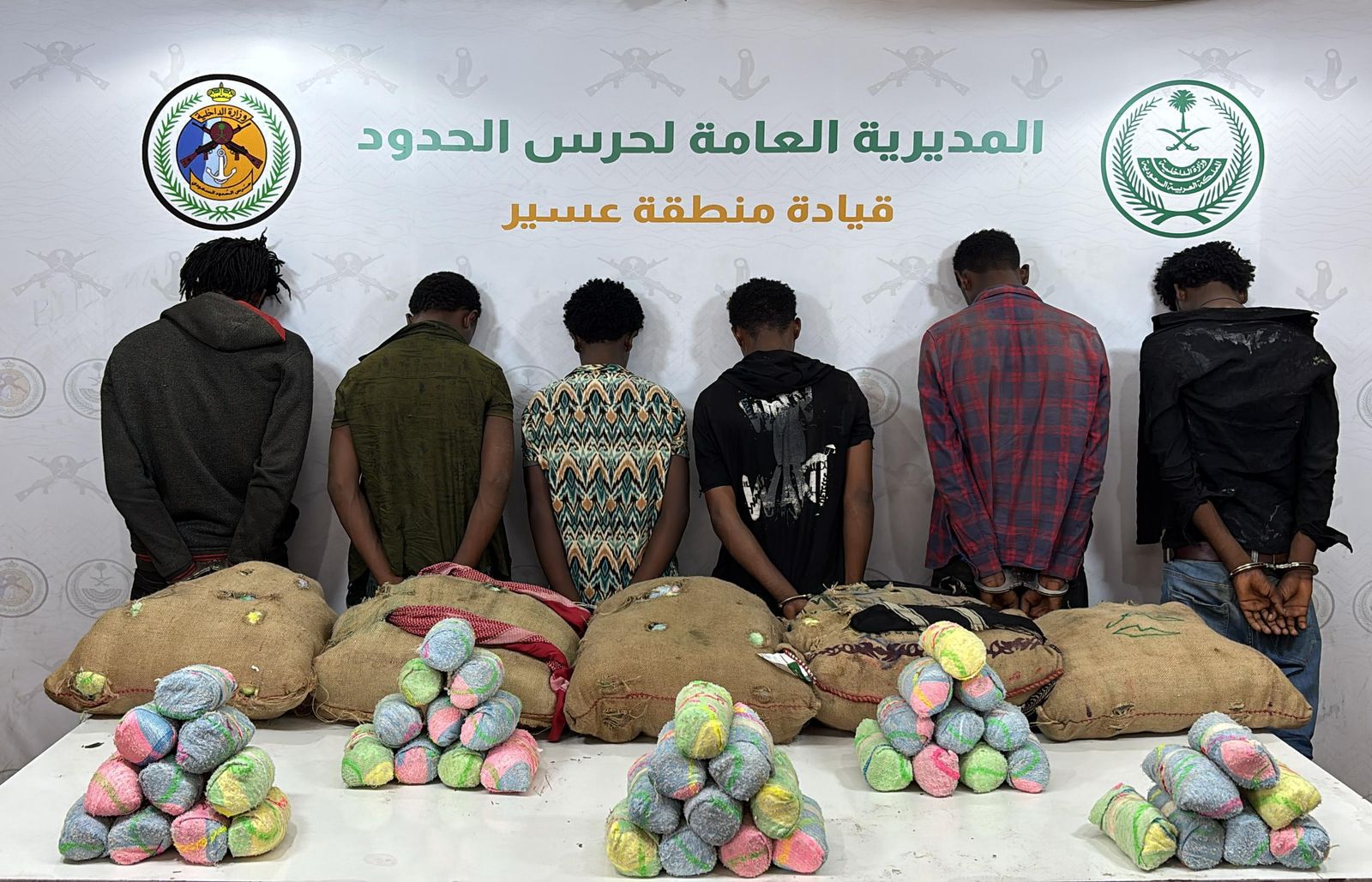 حرس الحدود بمنطقة عسير يقبض على 6 مخالفين لنظام أمن الحدود لتهريبهم 90 كلجم من القات المخدر