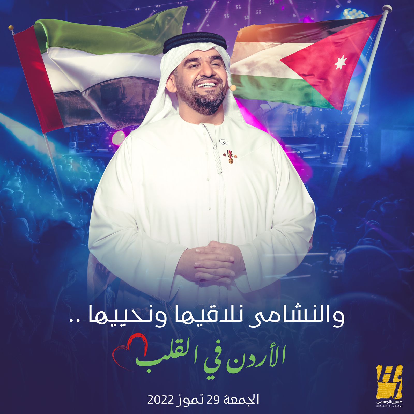 ومن ناحية الحفلات، يستعد حسين الجسمي للتوجه الى العاصمة الأردنية عمّان، ضمن جولته العربية لعام 2022 ، خلال الأيام القادمة لإحياء الحفل المرتقب يوم الجمعة الموافق 29 يوليو/تموز 2022، في فعاليات “عمّانLive Nights 22″، والذي أعد له برنامجاً غنائياً مميزاً أمام الجمهور الأردني، والذي وصفهم بـ”والنشامى نلاقيها ونحيّيها .. الأردن في القلب”.