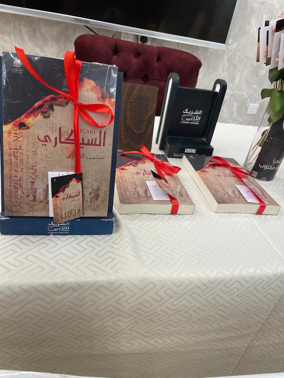 تخللت الفعالية مساهمة مميزة من دار مكتوب للنشر شملت توزيع نسخ من الرواية فضلاً عن إهداء كتب أدبية على الحاضرين مما أضفى على اللقاء بُعداً ثقافياً ممتعاً ومباشراً بين الأدب والفن التشكيلي.