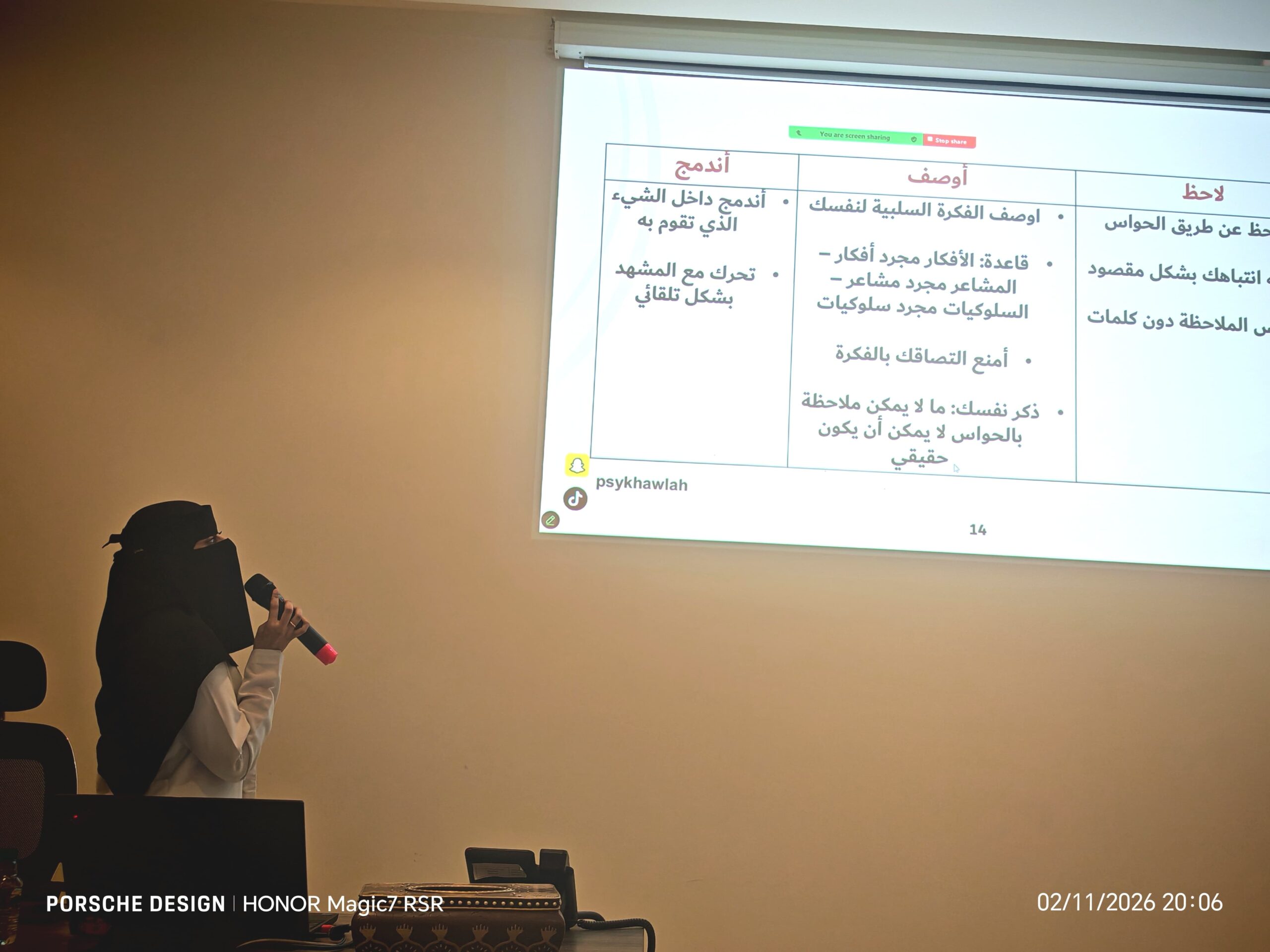 وتناولت الدورة مفاهيم القلق، الشخصية القلقة، ودائرة الأفكار السلبية، بأسلوب تفاعلي مفتوح على الأسئلة والنقاش، حيث بدت الإجابات امتداداً للفهم العميق لا مجرد ردود جاهزة، ما أضفى على اللقاء طابعاً حيوياً وتطبيقياً بعيداً عن التلقين.