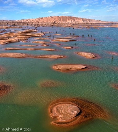 صور خلابة وساحرة لبحيرات خلفها إعصار ميكونو في صحراء الربع الخالي