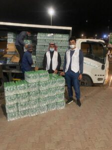 ٥٠٠ كرتون ماء ، وذلك ضمن مبادرة “عذباً فراتا” .