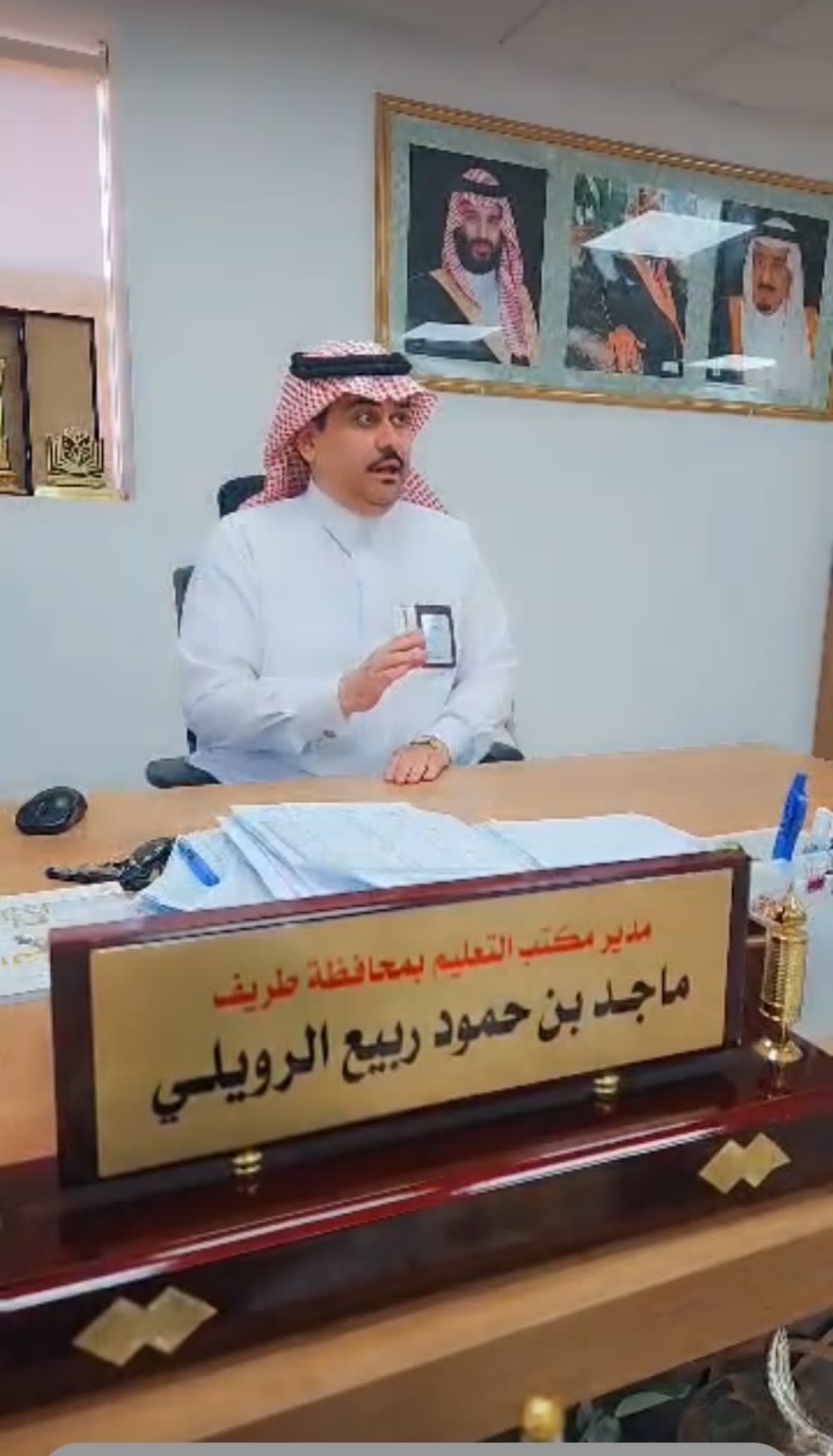 كرم سعادة مدير مكتب التعليم بمحافظة طريف الاستاذ ماجد بن حمود الرويلي الطلاب والطالبات الحاصلين على ٩٠ درجة فما فوق في اختبارات القدرات العامة في مبادرة لتحسين نواتج التعلم وتوطين المدربين لاختبارات القدرات العامة واختبار التحصيل الدراسي لعام ١٤٤٥هـ