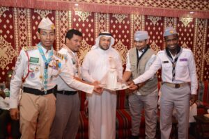 ثم قلد قائد لجنة البرامج بمكتب رابطة رواد الكشافة بمنطقة مكة المكرمة الرائد الكشفي علي بكر هوساوي والقائد الكشفي سمير سالم باطوق رئيس لجنة التنمية الاجتماعية بمحافظة خليص القائد الكشفي محمد سلطان مغربي وسام الإبداع والتألق والتميز والابتكار الذي منح له من مكتب رابطة رواد الحركة الكشفية بمنطقة جازان وذلك تقديراً لدوره في الأعمال الإنسانية والاجتماعية والرياضية والتطوعية والخيرية والوطنية والمجتمعية والكشفية ثم قام القائد الكشفي المذيع بكر عبدالقادر والقائد الكشفي صالح حسن فيرق قائد جوالة الكلية التقنية بمحافظة الطائف والقائد الكشفي عمر ابوصديق وعريف اول كشافة شباب مكه الكشاف رياض علي علواني بتقديم هدية كشافة شباب مكة لرئيس لجنة التنمية الاجتماعية بخليص محمدسلطان مغربي عبارة عن دلة قهوة سعودية عليها شعار كشافة شباب مكه بعد ذلك كرم المغربي كلا من الرائد الكشفي علي بكر هوساوي والقائد الكشفي سميرسالم باطوق تقديرلجهودهم وعملهم الدؤوب في الأعمال التطوعية بساعات مقدمة من رجل الأعمال سامي إبراهيم بكر فلاته وكرم كلا من الكشاف رياض علي علواني لجهوده والكشاف ممدوح عبدالرحمن من فرقة الفتيان بكشافة شباب مكة للتميز وحضوره ومشاركاته بساعات ممثلة من رجل الأعمال سامي إبراهيم فلاته بعدذلك تناول الجميع طعام السحور الذي أعد بهذه المناسبة.