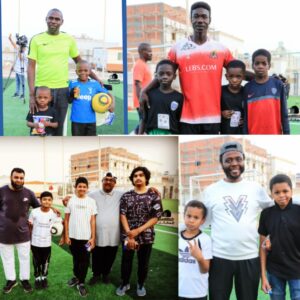 وتم توزيع كرة قدم لكل ابن وحلوى وعصائر، وزين الملعب بالبالونات الملونة لإضفاء روح المرح والفرح على الأجواء .