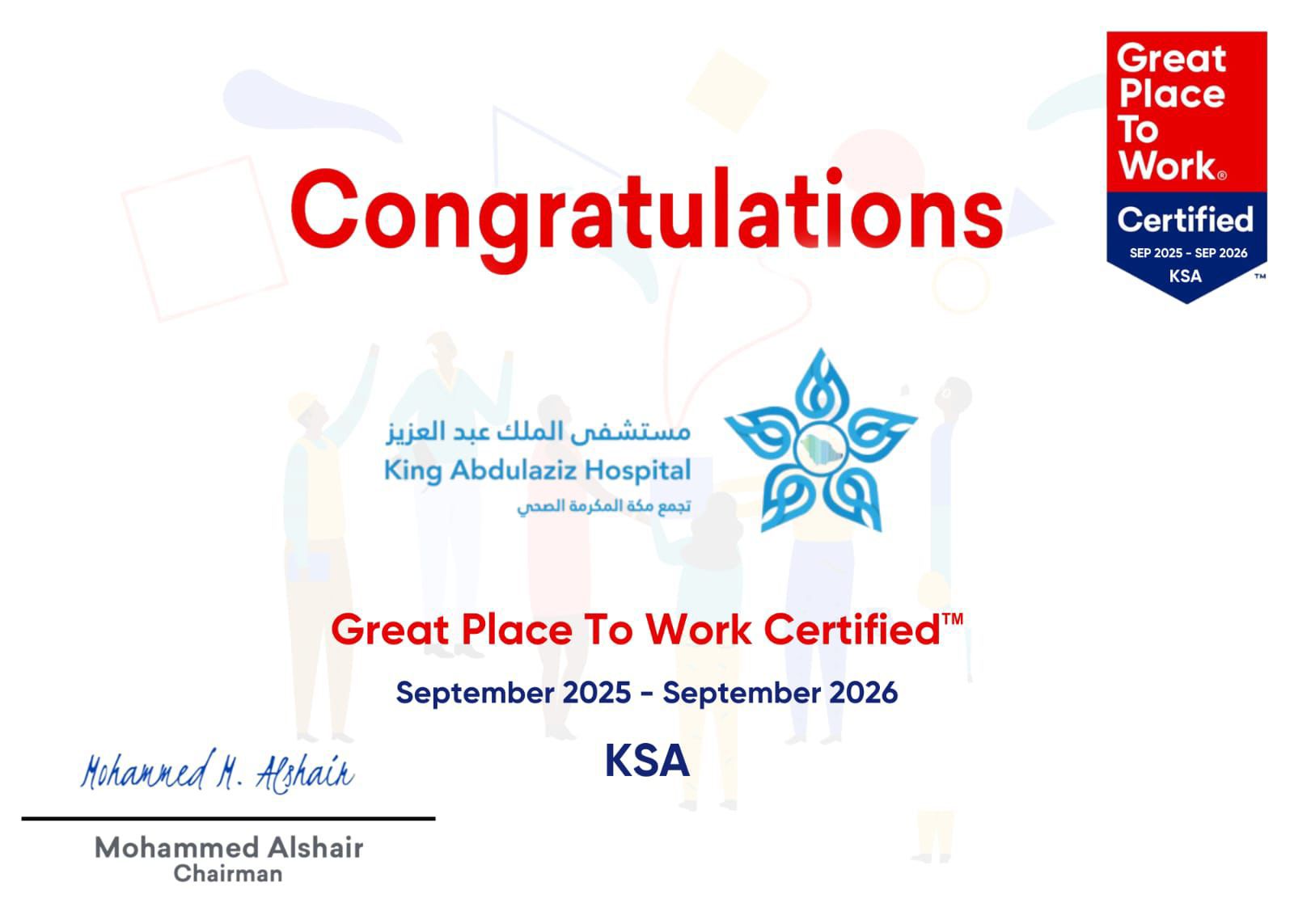 مستشفى الملك عبدالعزيز بمكة يحقق إنجازًا جديدًا بالحصول على اعتماد أفضل بيئة عمل