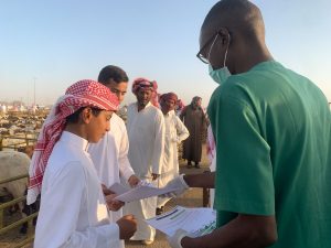 دشن مكتب وزارة البيئة والمياه والزراعة بمحافظة حفرالباطن صباح هذا اليوم بالتعاون مع مركز وقاء بالمحافظة، حملته التوعوية “أضحيتي”، للتعريف بالاشتراطات الصحية للأضحية، وتوعية الراغبين بشراء الأضاحي بكيفيه تمييز الأضحية السليمة والمريضة قبل الذبح وبعده، وحثهم على ذبح الأضحية في المسالخ المرخصة والخاضعة للرقابة البيطرية، إضافة إلى تقديم الارشادات الصحية.