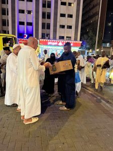 نفذ منتدى الاخوة الاجتماعي بمركز حي المسفلة فعالية الاحتفاء بضيوف الرحمن مع غرة شهر ذي الحجة حيث يتم (٨٠٠) وجبة جافة مكونة من (ماء،عصير، فواكه، كيك، تمر) يوميا على حجاج بيت الله الحرام في المنطقة المركزية والطرق المؤدية للحرم المكي الشريف وسيتستمر العمل الى اليوم التاسع من ذي الحجة بإذن الله فكتب الله اجر كل من ساهم في هذا سواء بالدعم او الجهد او الدعاء.