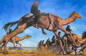 مزج أول معرض للرسم في مهرجان ولي العهد للهجن بالطائف، بين تراث الرياضة العريقة والفن التشكيلي، من خلال مجموعة من اللوحات التي قدمتها الفنانة التشكيلية منى شبيب السبيعي، إذ خصص الاتحاد السعودي للهجن معرضاً لها، وذلك دعماً وتشجيعاً لهذه المواهب.